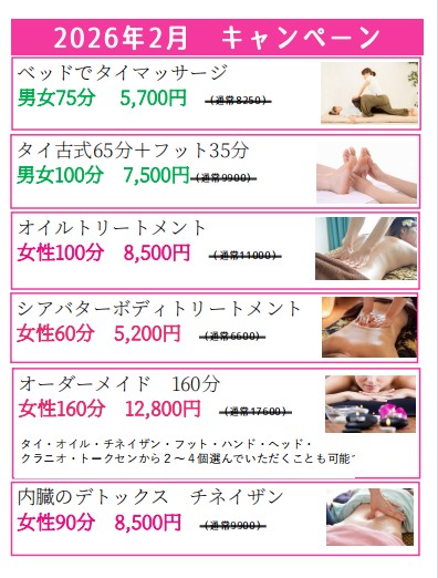 ▶平日(月~金)17時時半~20時半頃終了(女性のお客様か、男性はリピーター様限定)
